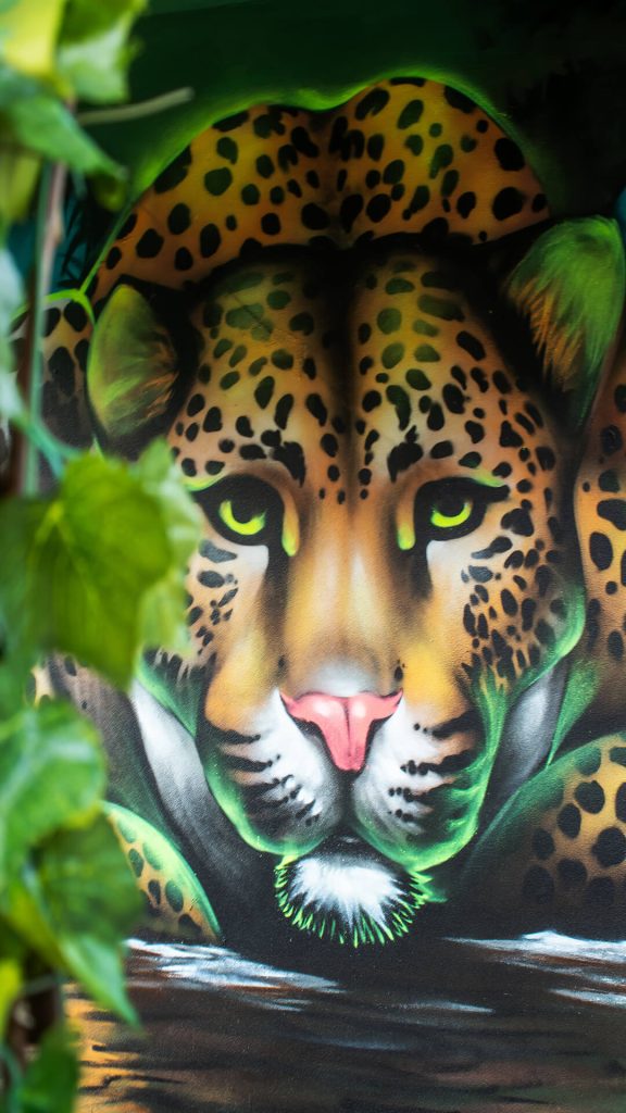 Uno de los detalles más especiales que nos distingue son nuestros murales inspirados en los animales de Costa Rica, pintados con amor por artistas locales. Al caer la noche, se iluminan con luces LED que los hacen brillar y transforman el ambiente en una experiencia mágica.